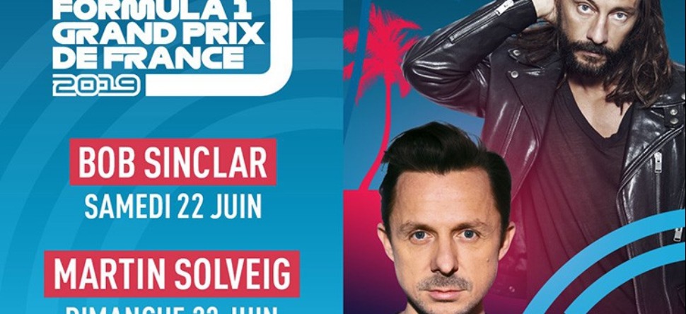 Les organisateurs du Grand Prix de France F1 ont annoncé que les deux DJ's Bob Sinclar et Martin Solveig se produiront chacun en concert gratuit durant le GP au Castellet. Bob Sinclar sera le premier en scène le 22 juin, et Martin Solveig l'imitera le lendemain. Les deux concerts seront accessibles à tous les détenteurs d'un pass ou d'un billet. Bob Sinclar et Martin Solveig succéderont ainsi à David Guetta, qui s'était, lui, produit l'année dernière.