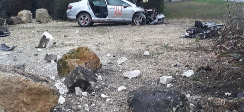 Il semblerait, selon les traces observées sur place, qu’il ait percuté une croix de mission, totalement détruite, ainsi qu’un muret et un panneau indiquant un lieu dit. Le véhicule a ensuite effectué une embardée sur plusieurs mètres.